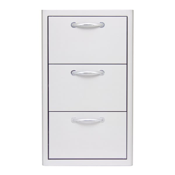 This Blaze Triple Access Drawer features clean design elements and quality construction using commercial grade 304 stainless steel that can stand up to the outdoor elements. Accented with curved handles and a unique, completely rounded bevel design, this drawer provides that quality touch to your outdoor kitchen or BBQ island. Blaze storage drawers are the perfect outdoor storage solution! Drawer 1 opening measurement 12 3/4 W x 7 3/4 H. Drawer 2 and 3 opening measurements 12 3/4 W x 9 1/4 H. As of March 15, 2016 — All Blaze cabinetry will feature a lifetime warranty. Product must be registered within thirty days for the warranty to apply.